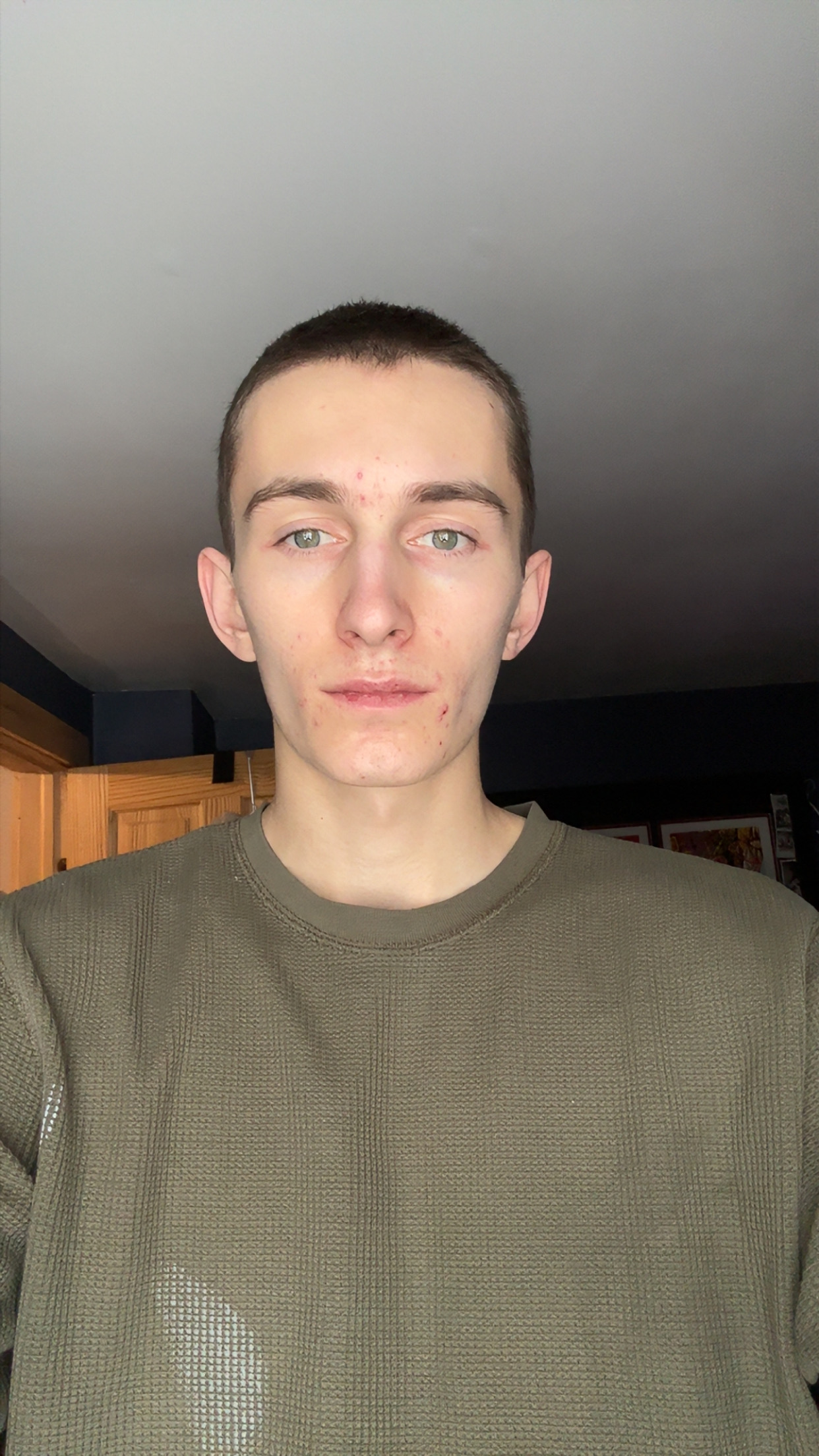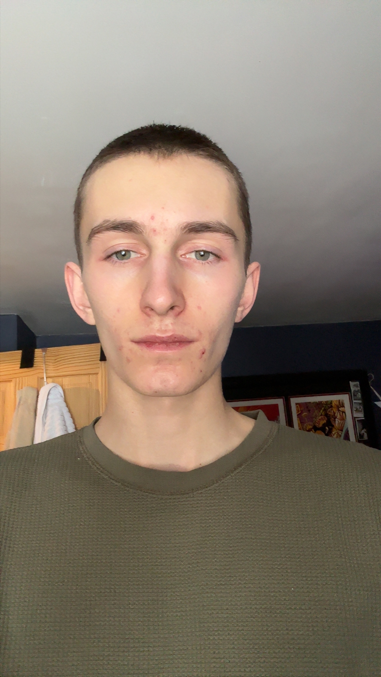 I used to have longer hair I just buzzed it bc it was blonde and I wanna grow it back all the same color4,5 I see potential to mtn tho, just by the eye area, u need to get a more masculine jaw and grow ur hair out