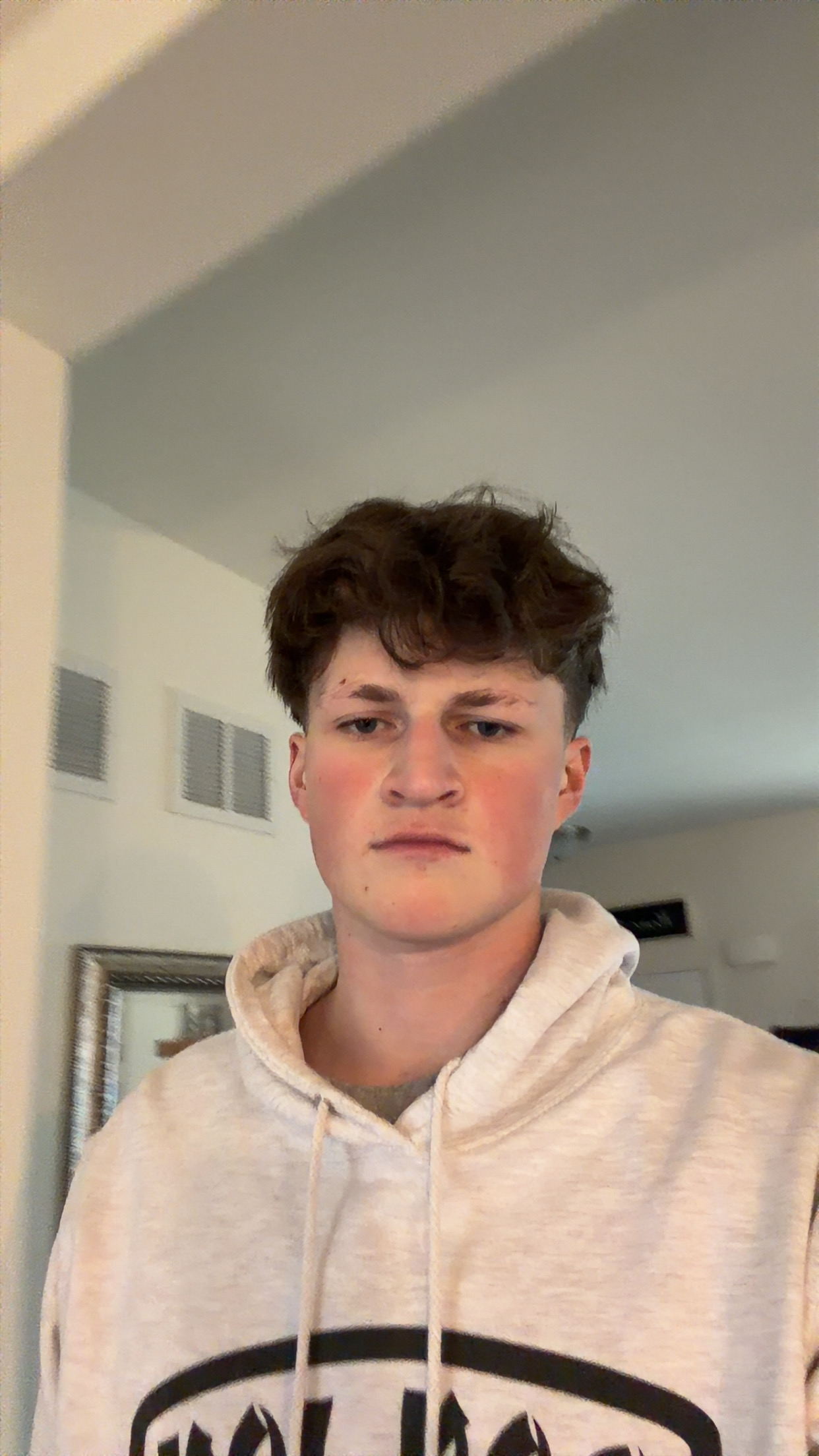 - ur eyebrows are thin, sparse and uneven. like anorexic faglets. the arch is weak, the tail fades out and the overall density is low. looks low test. they sit too low and far apart relative to ur eyes and make the frame looks flat and tired. theyre light and washed out against ur skin. not symmetrical either.