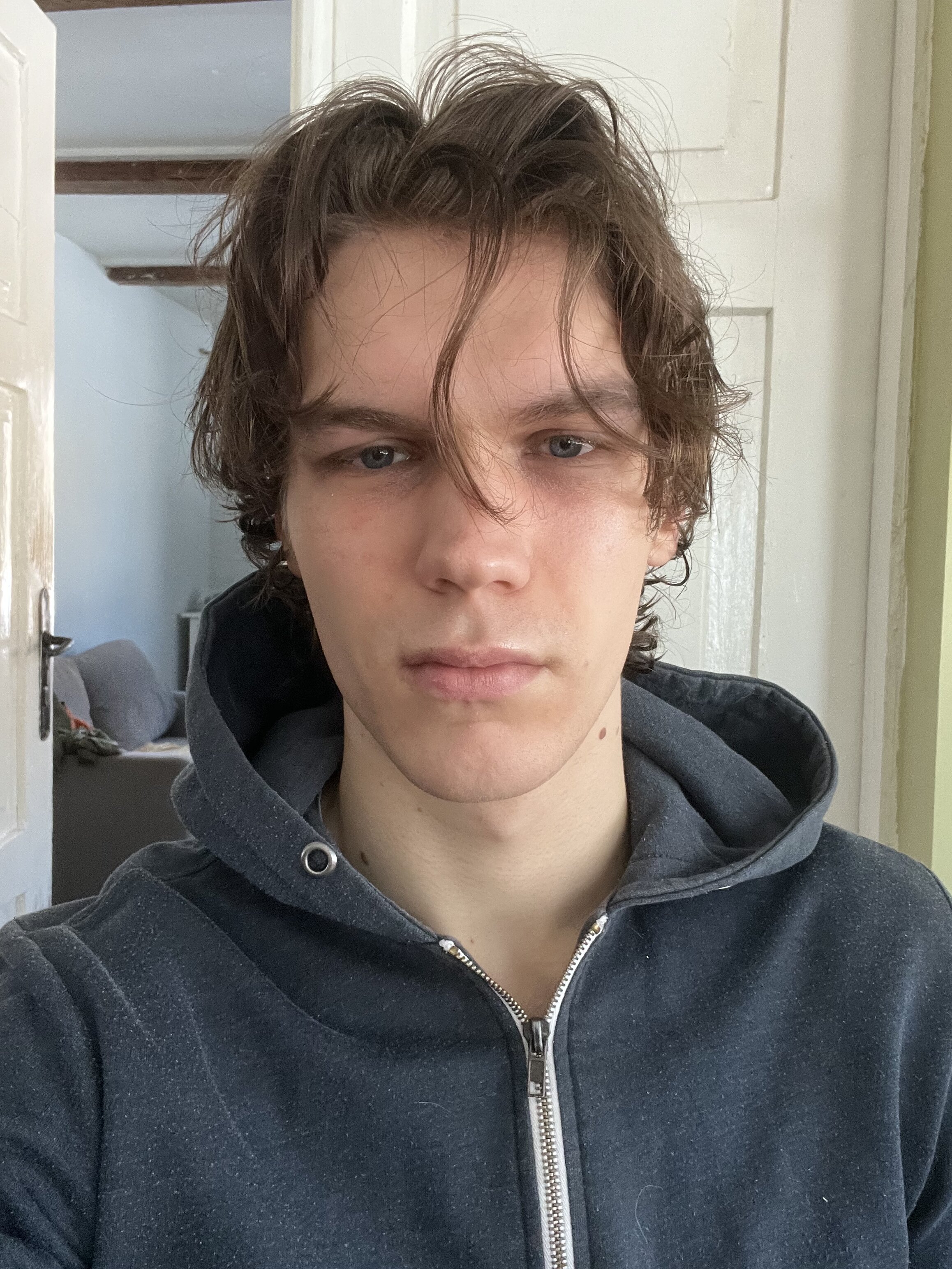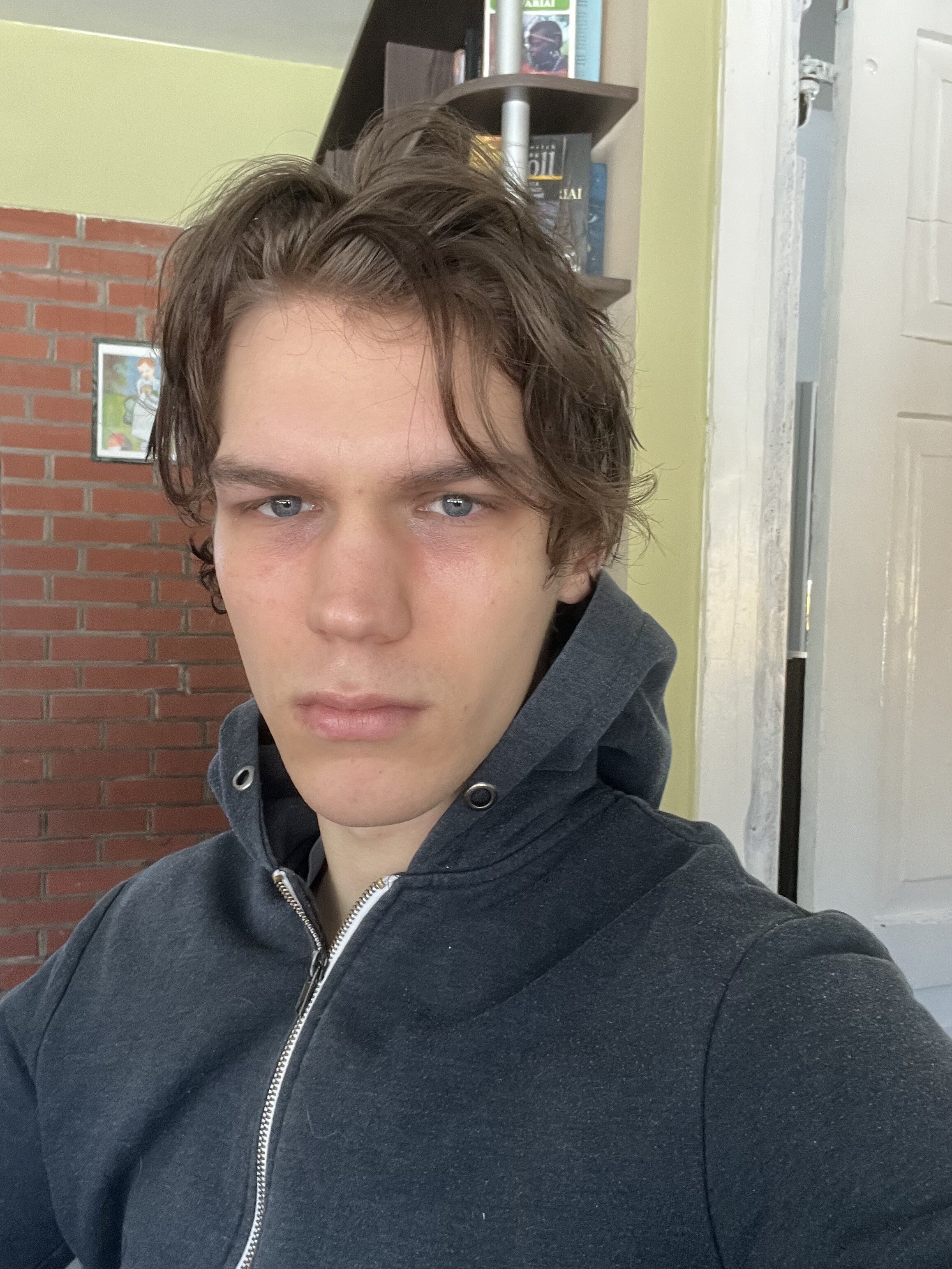 You look kinda capped ngl. But, definitely fraud infras with makeup and change your coloring I think.