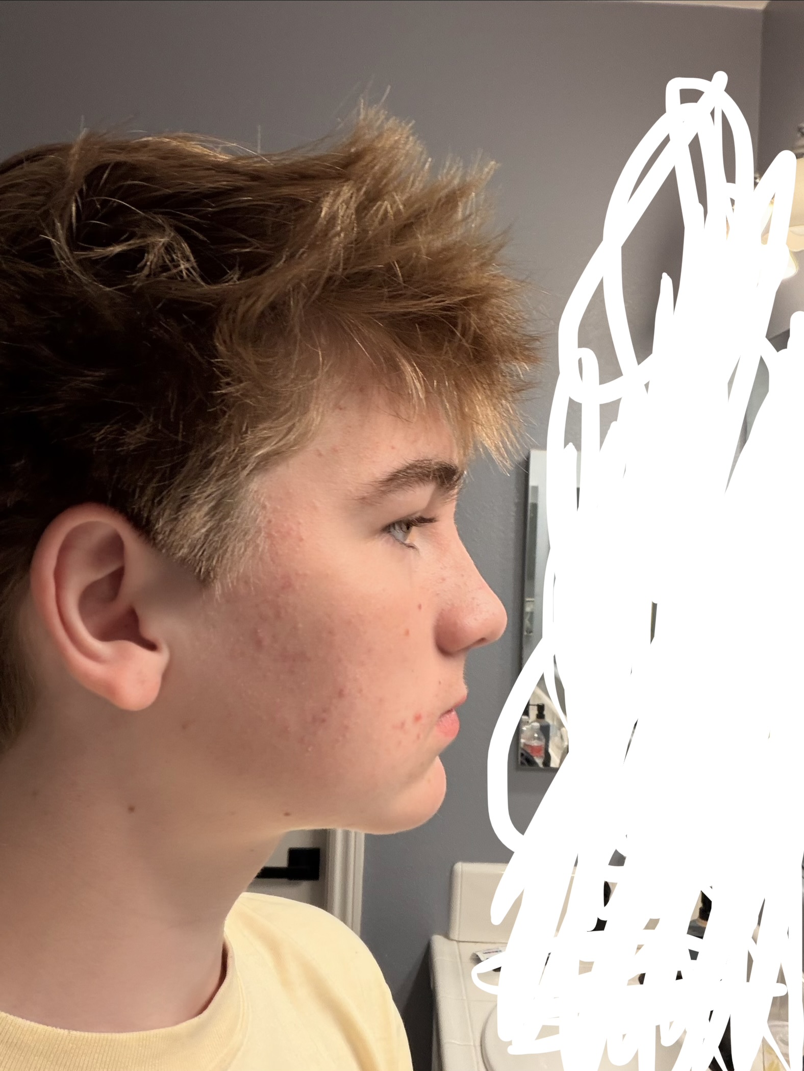 Wash your face buddy. Cant go around looking like that. Sleep on your back and get a orthodontic headgear . Go blast some ghk-cuRate me and lmk what i can improve