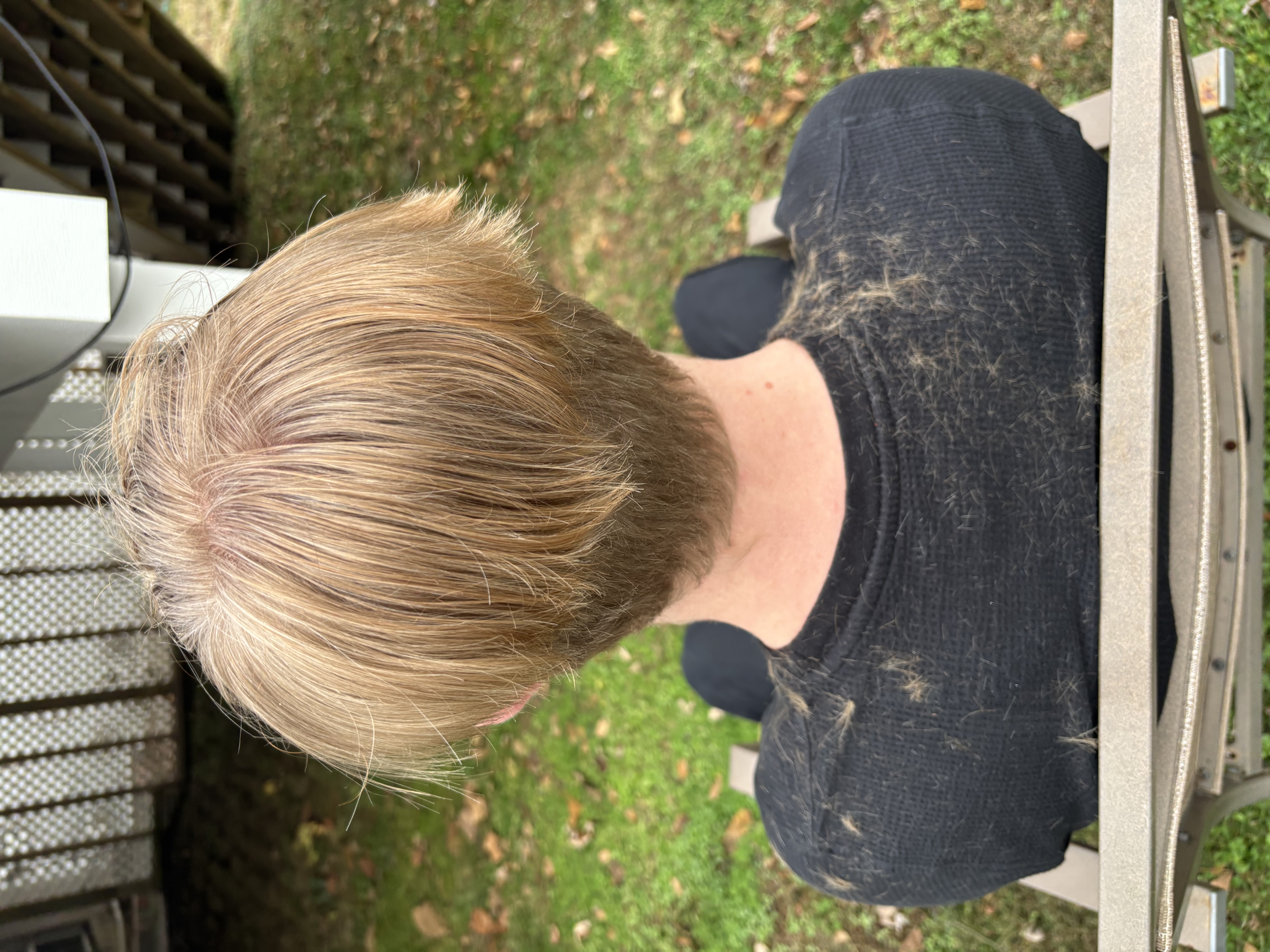 Here’s a photo I took when I was cutting his hair, yikes