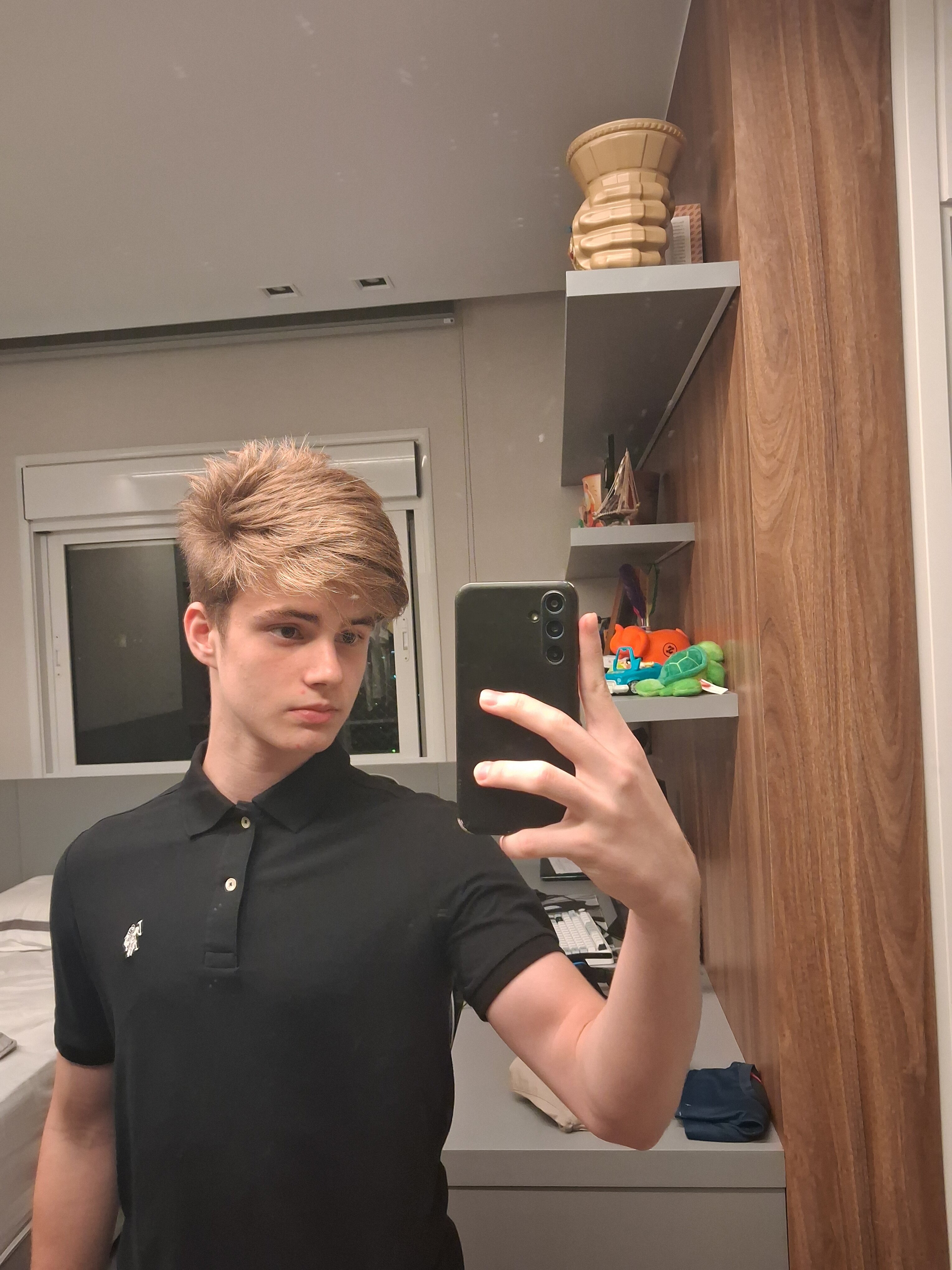 Its not even a side part bro but anyways if ur talking abt that second picture its cause my hair was fucked up you should look at the 1st oneAnything but that side part ima be real with you![]()