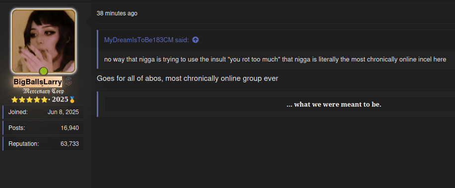 Nigga still talking about “your life is this forum” while editing my messages to try and ruin peoples incel org reputation :lul: @Orka