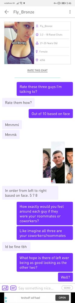 again. she only rates them so high, because she sees your subhuman ungroomed head next to them