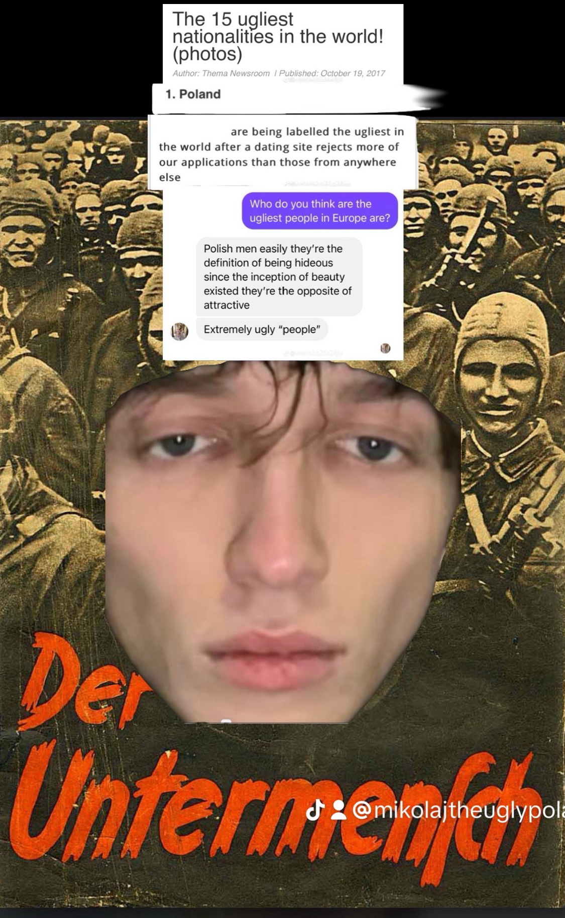 Polish “people” are ugly as fuck and have depression so severe they have to send memes to circumvent the fact they’re conscious of how ugly they are as a “people”​