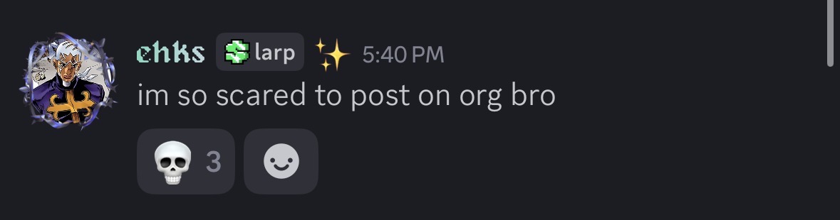 Ive stopped using the discord its so shit compared to org idk how I use to prefer it