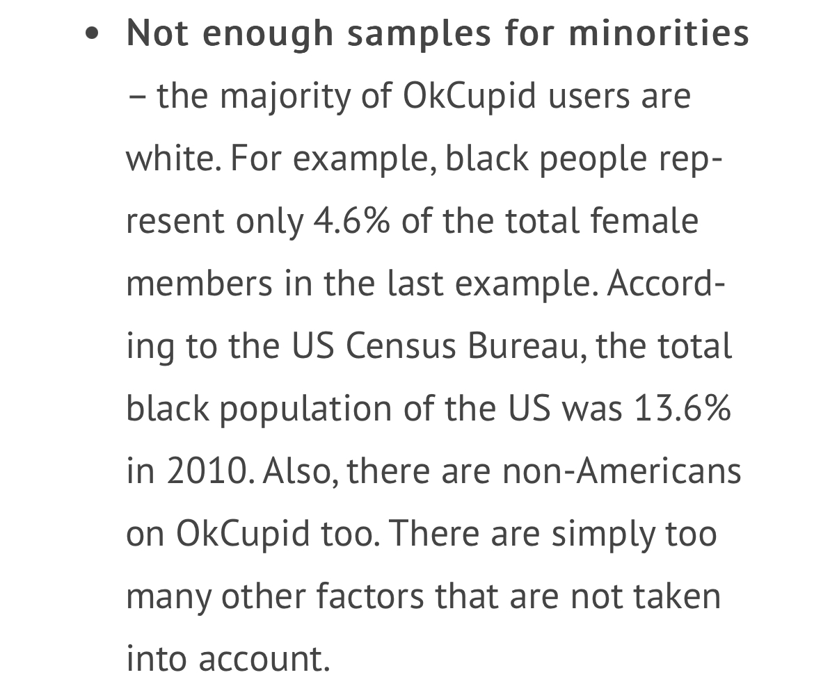 As you know most of the JBW sources rely on okcupid which was noted to quite literally have a negligible sample size for ethnics, AIE meaning that it was a disproportionality white dating app, although this is just focusing on okcupid, dating apps as a whole aren’t used by ethnics, this is more of a white thing.