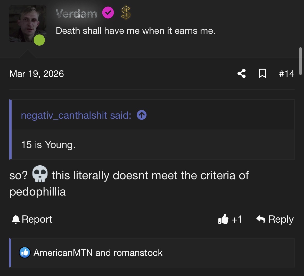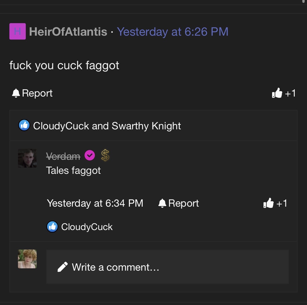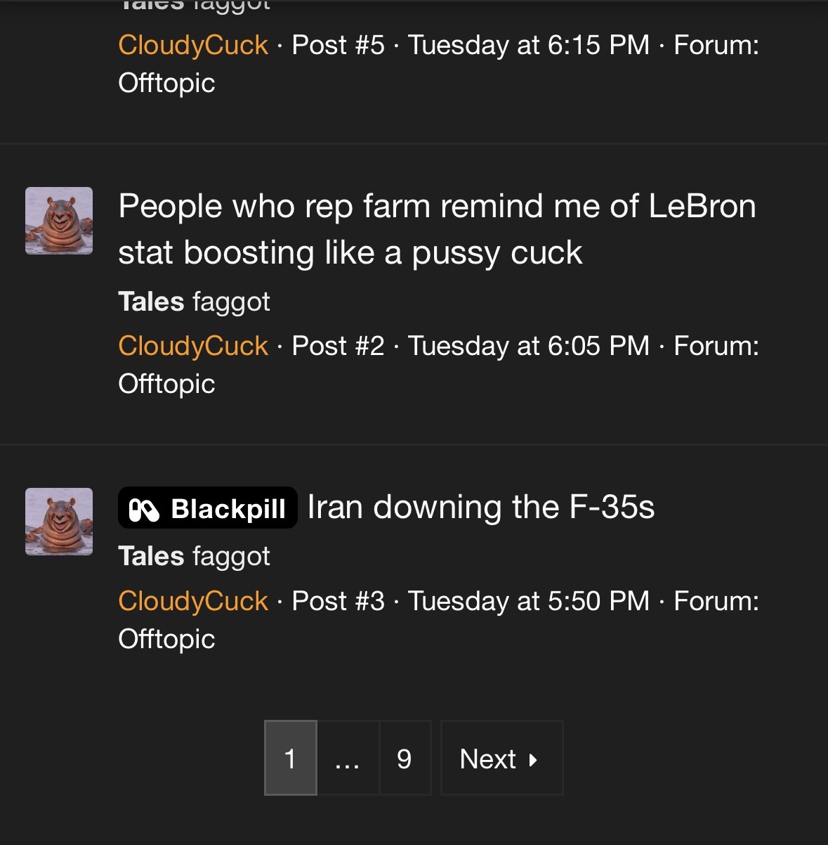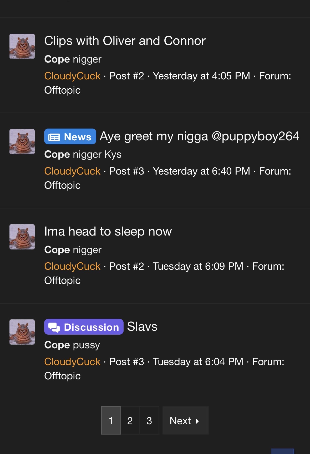 And 3 pages of “cope” continued by various different slurs.