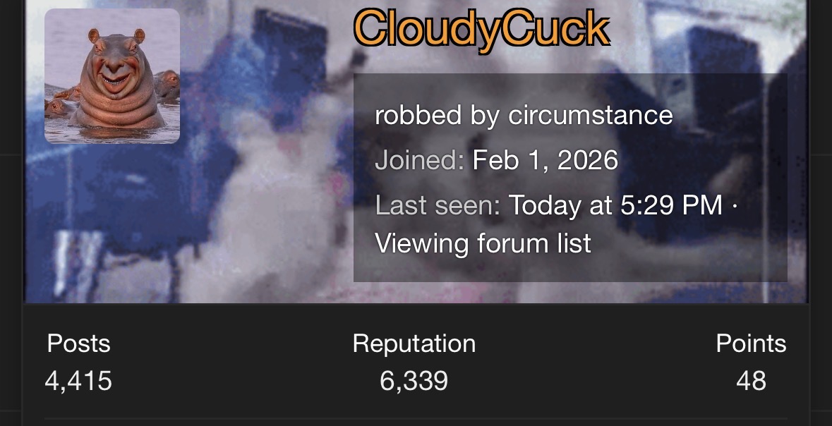 Let’s continue with Cloudycuck and the real reason I’m making this thread is because if cloudys persistence to perform.