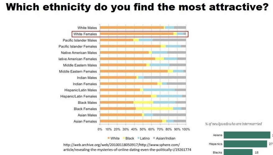 Also the reason why your argument is so bad is because when white women date or marry other races in america, it is mostly with hispanic men. And “hispanic” in these studies also includes “white-hispanic” who mostly identify as white anyways. And hispanics in general typically prefer being identified as white. So its cope