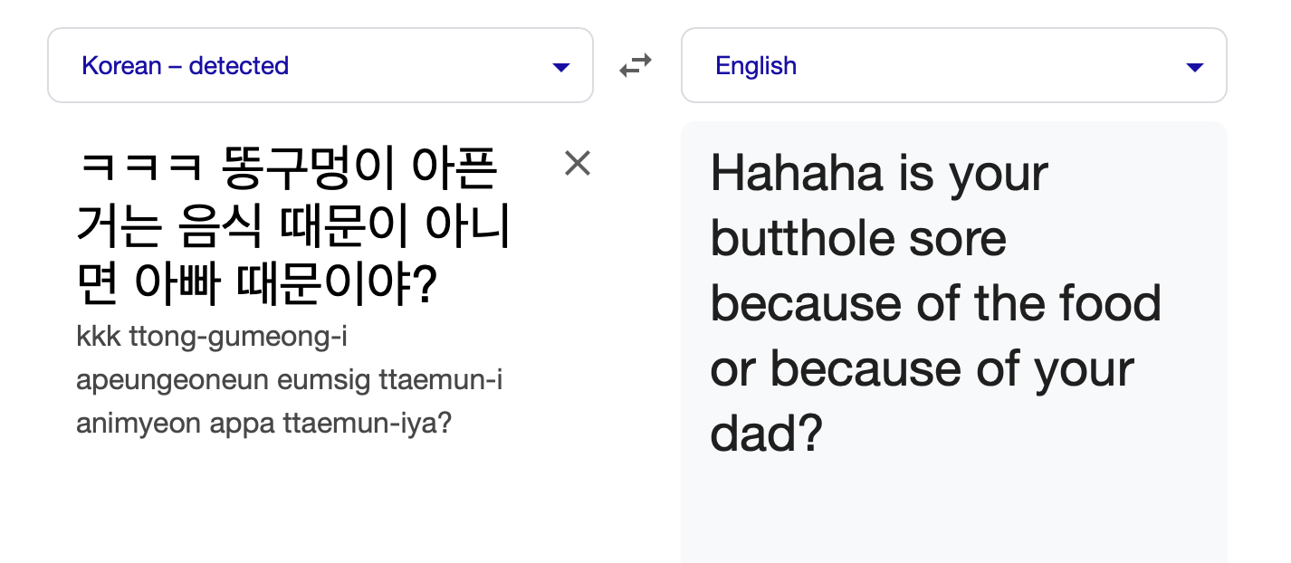 Oh, I thought he might have been a wu mao or something.He is larping I know how to speak korean the sentence structure and tone of speech is all robotic and akward all translator generated probably