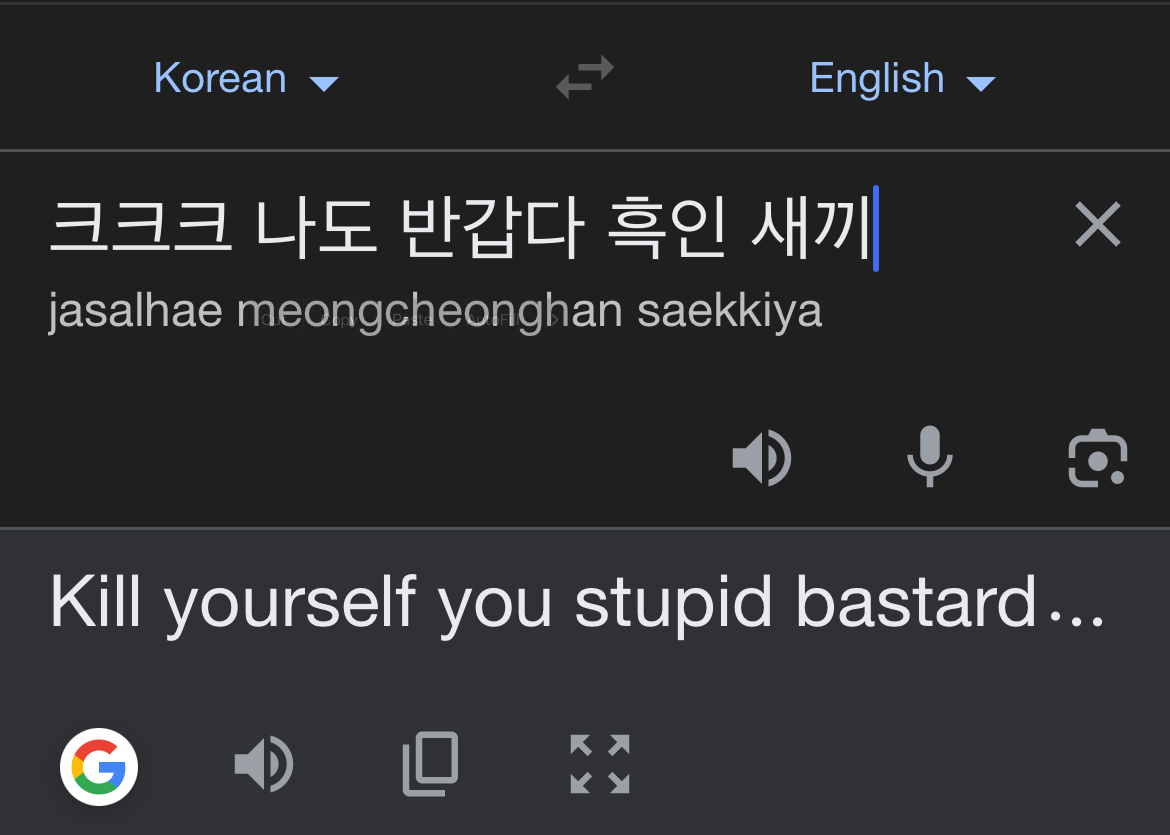 You're Asian? I thought you were white. This is very unsettling.I’m from America nigga, I don’t know Korean.