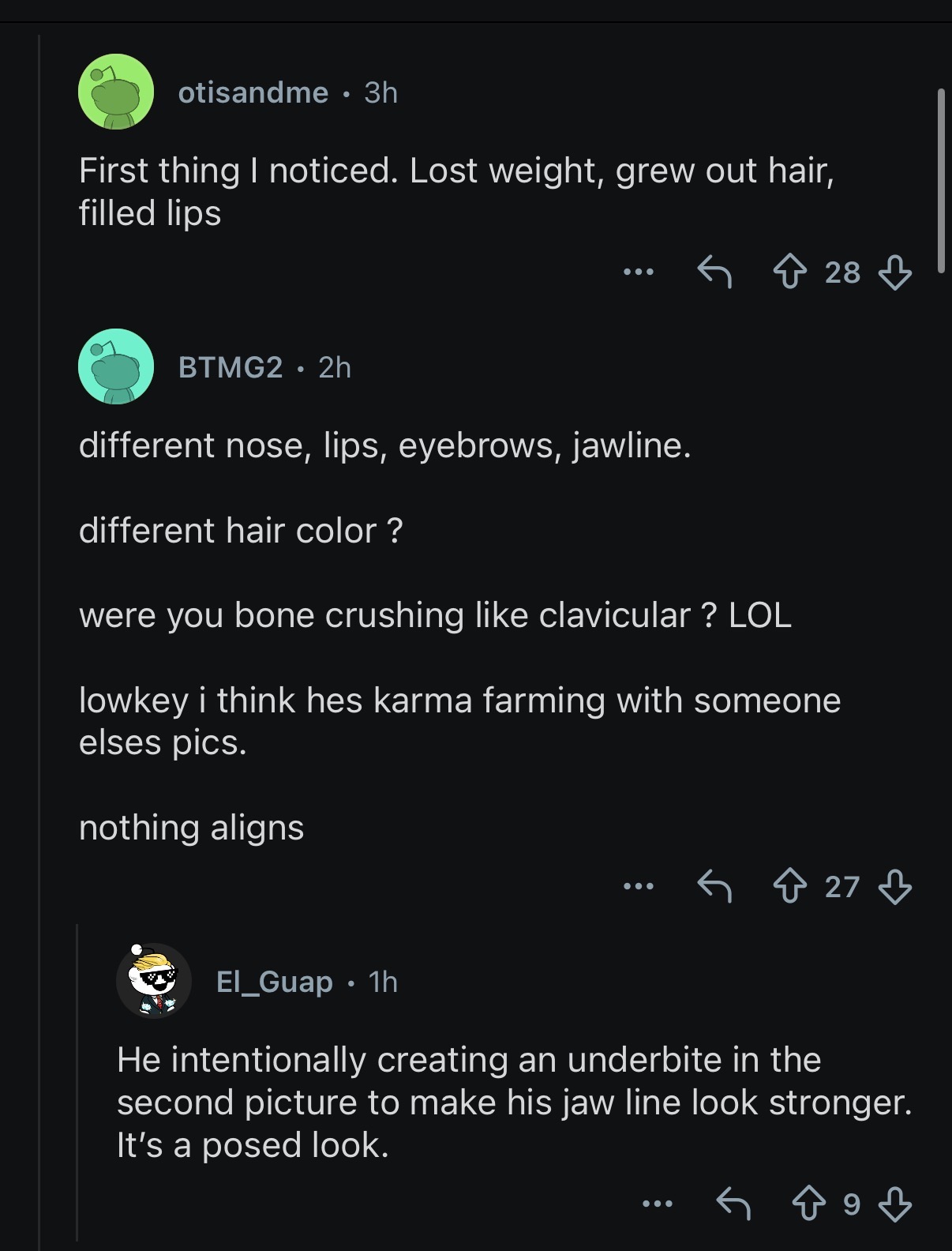 My fault for even going on here but I wanted to see how different the people are on here vs on reddit. Posted my transformation and everyone thought I got surgery done. Just a bunch of idiots that think the gym is the only way to improve your looks lol.