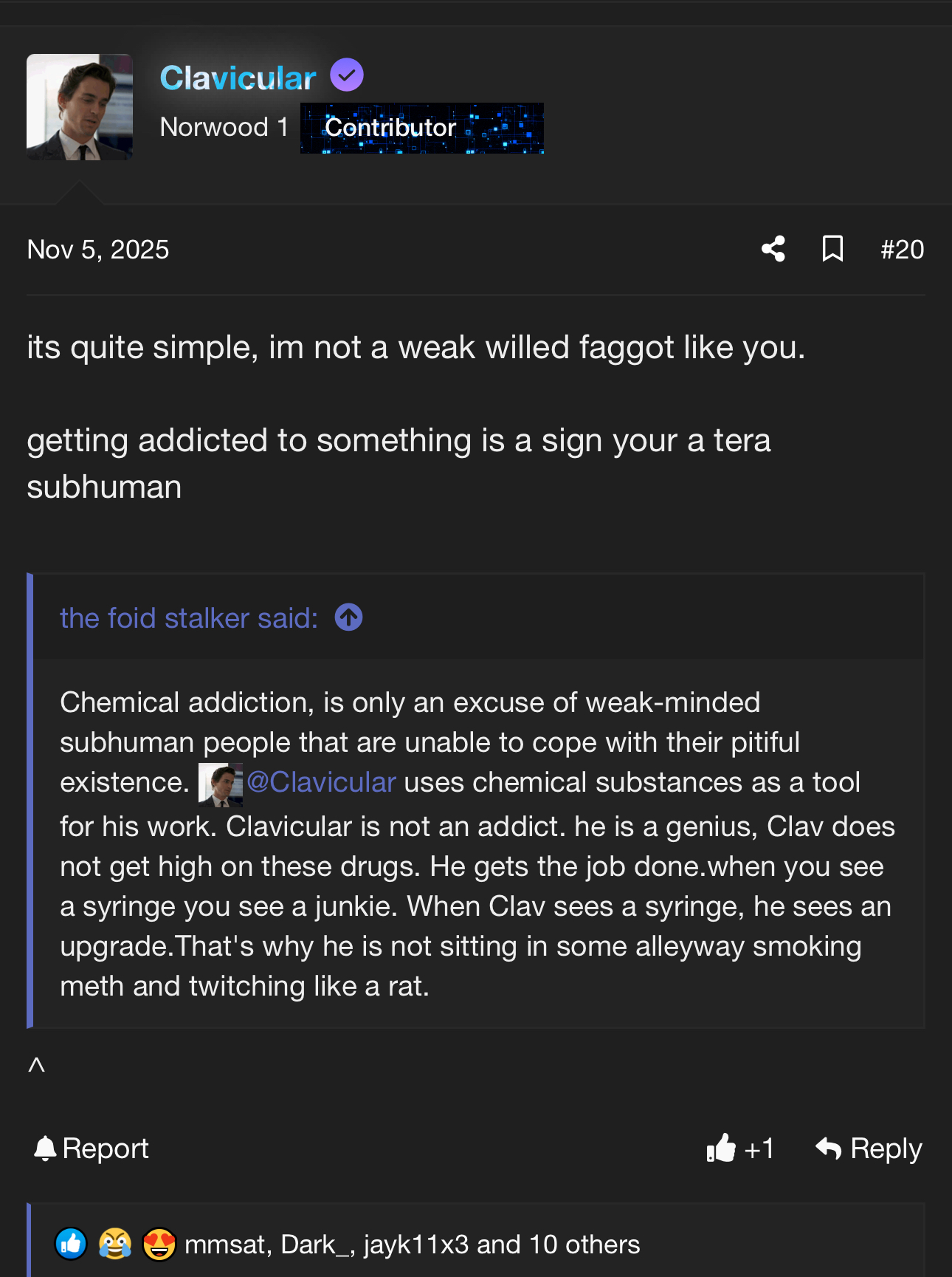 Notorious_1676 Gold Joined Nov 14, 2025 Posts 764 Reputation 1,108 Friday at 9:03 PM #3 I'm all fairness, he's probably not addicted and it's the Jews :forcing" him to do it