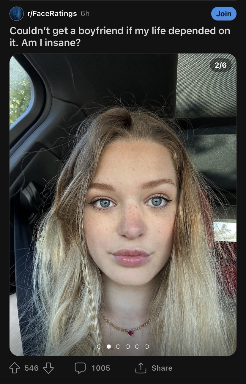 The sad part is that shes not even lying from her PoV, all sub 10/10 chads are invisible to her and apparently 10/10 chads dont want her.