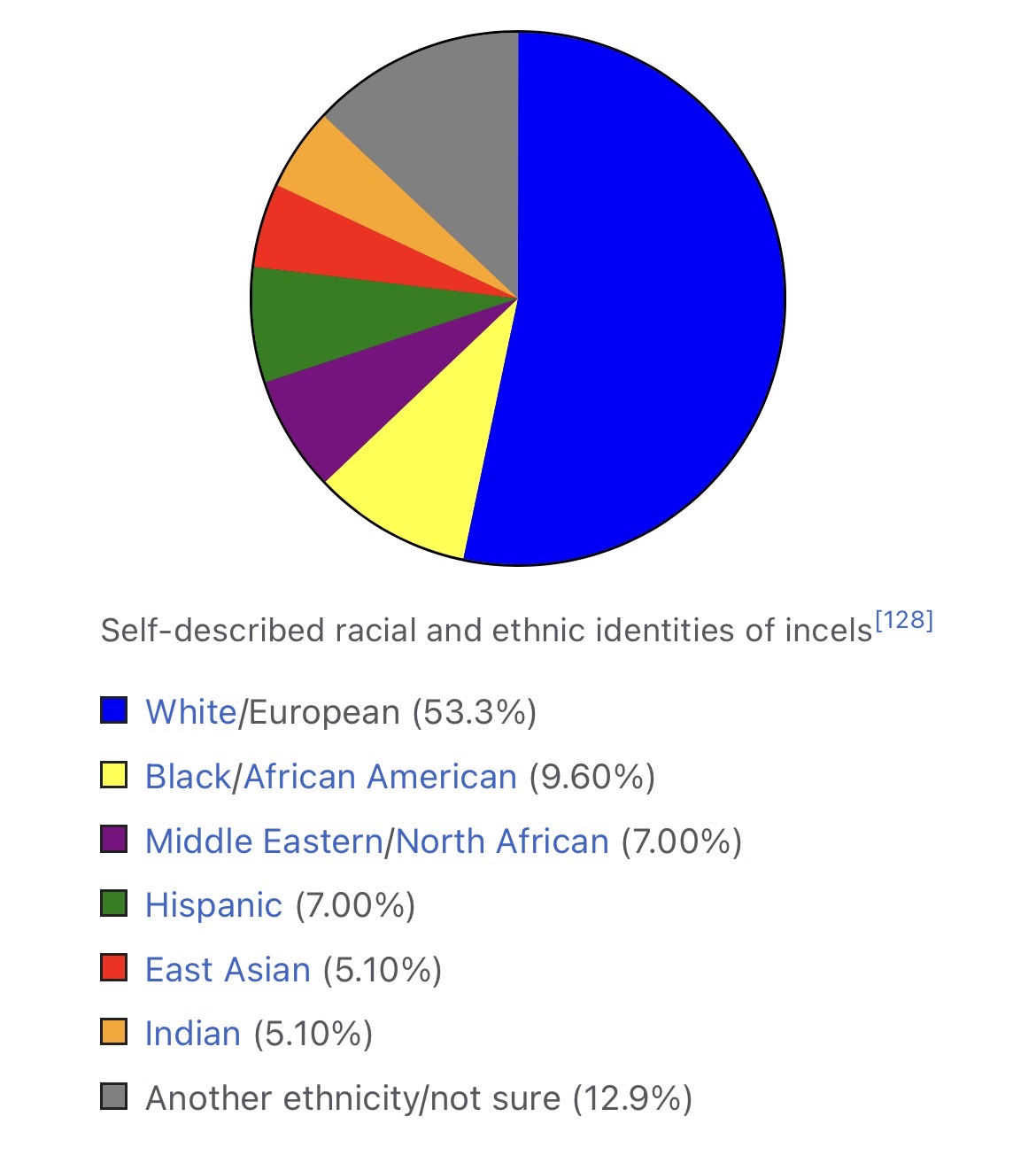 They are all incelsNotice how South East Asians aren’t on the list