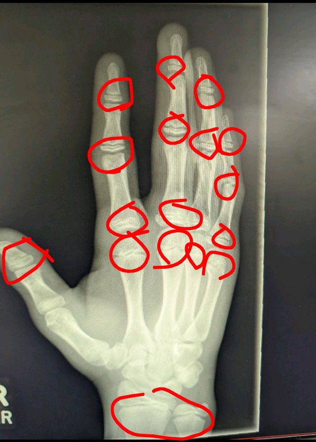 Look at this photo, can you see the parts of my fingers and my pulse is "cracked"? So, while this parts still cracked, I still gonna grow some inches, probably until my 19 or 20(so much improbable that I gonna grow until this age lol)