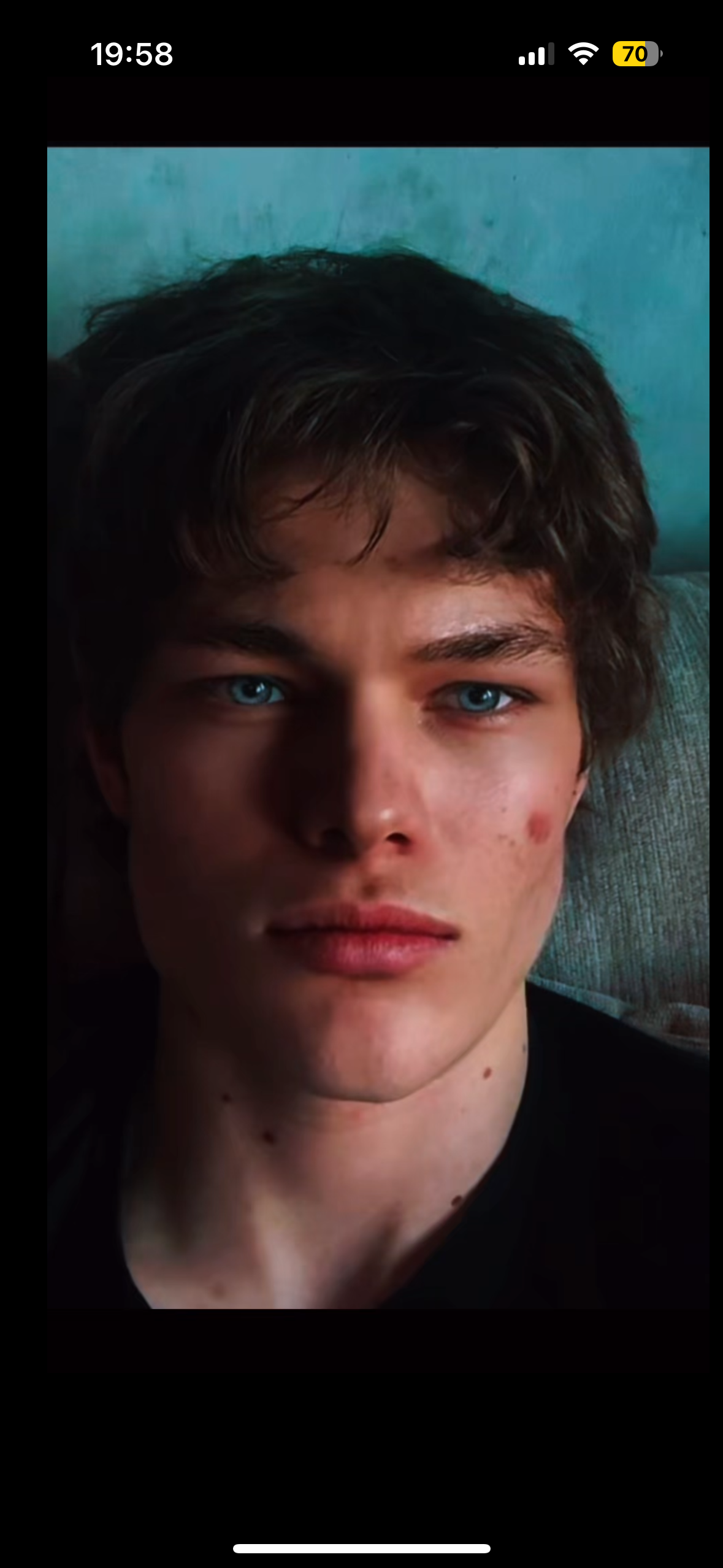 Its cuz of the TikTok filters it makes me tanner and darker eyebrows and removes acne and i have a blue eye filter, heres unfraduded pic: