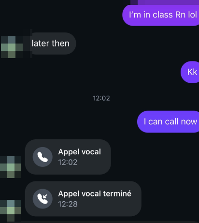 And to contextualize the fourth screenshot (the girl calling me, me saying I'm in class, then calling her), her boyfriend got mad because I sent her an "us" video and he told her to block me and to also tell me that me and her are strictly friends (JFL she called me a day later apologizing) ->
