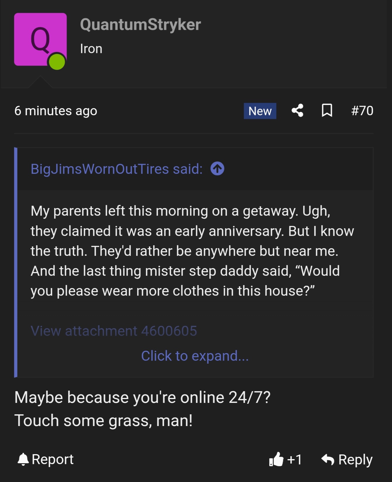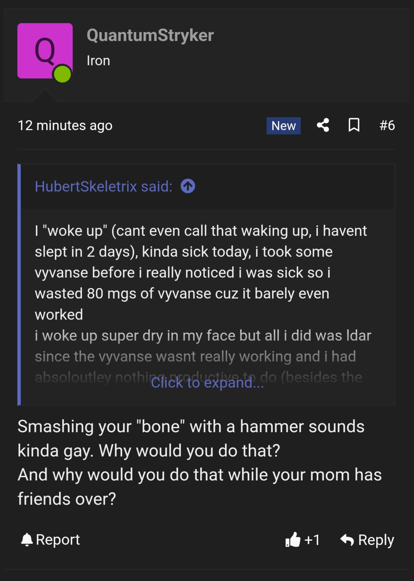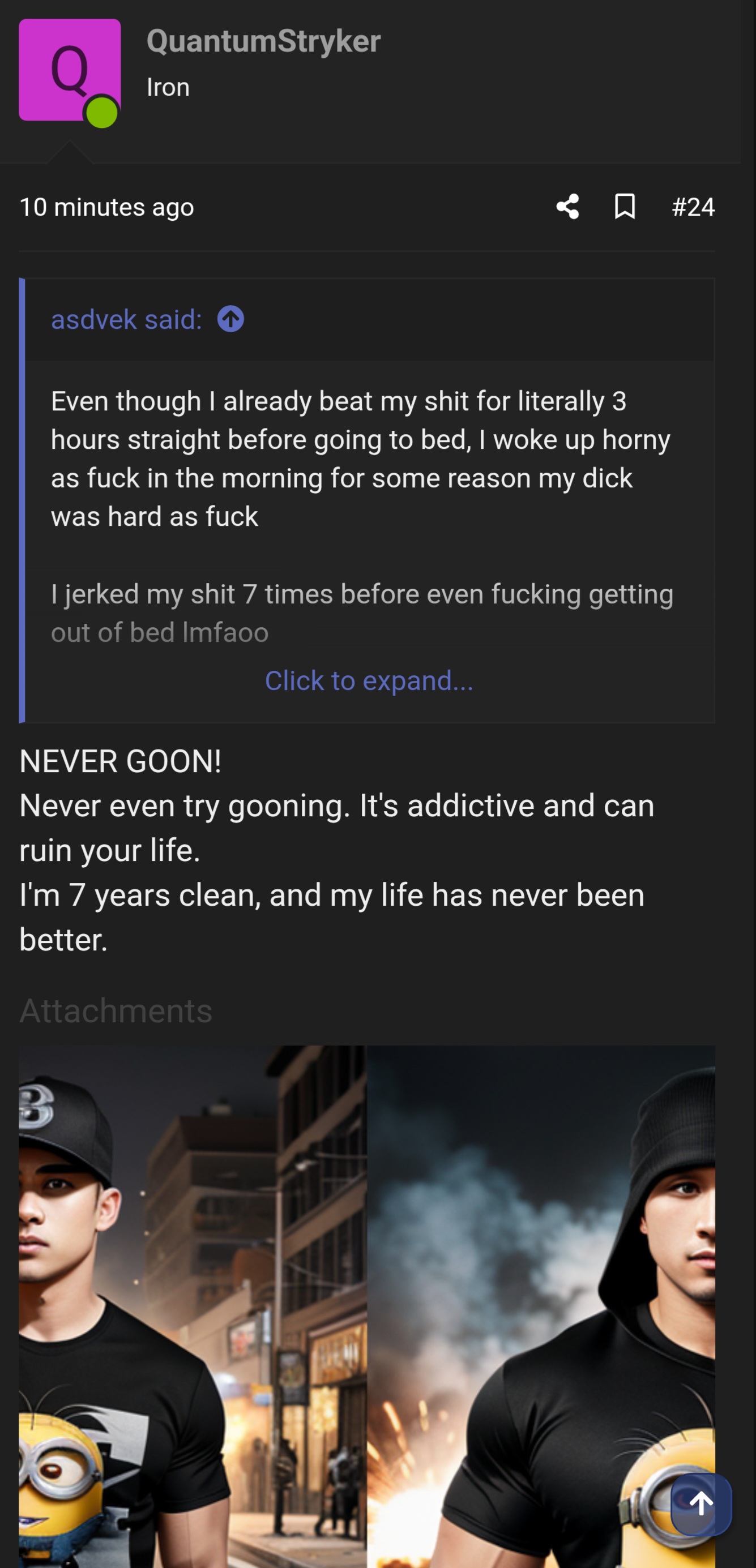 2) secondly, we know he is a new user. actually, i'll call QuantumStryker an IT, because AI IS INFERIOR TO THE HUMAN SPECIES. anyway, he doesn't have many posts, but in this very small selection, he has the AUDACITY to use AI GENERATED IMAGES!!