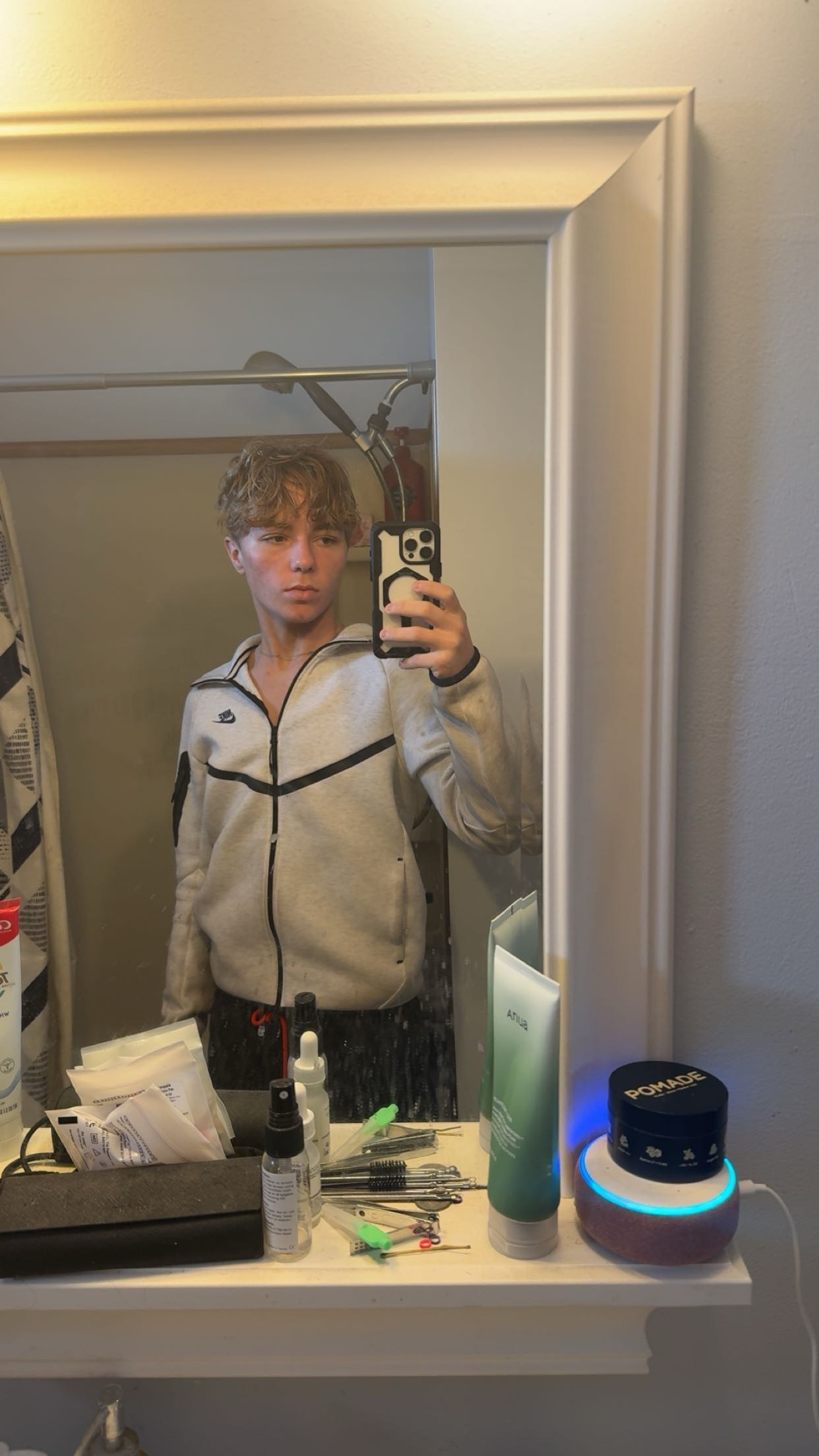 you could start by taking the nike tech off