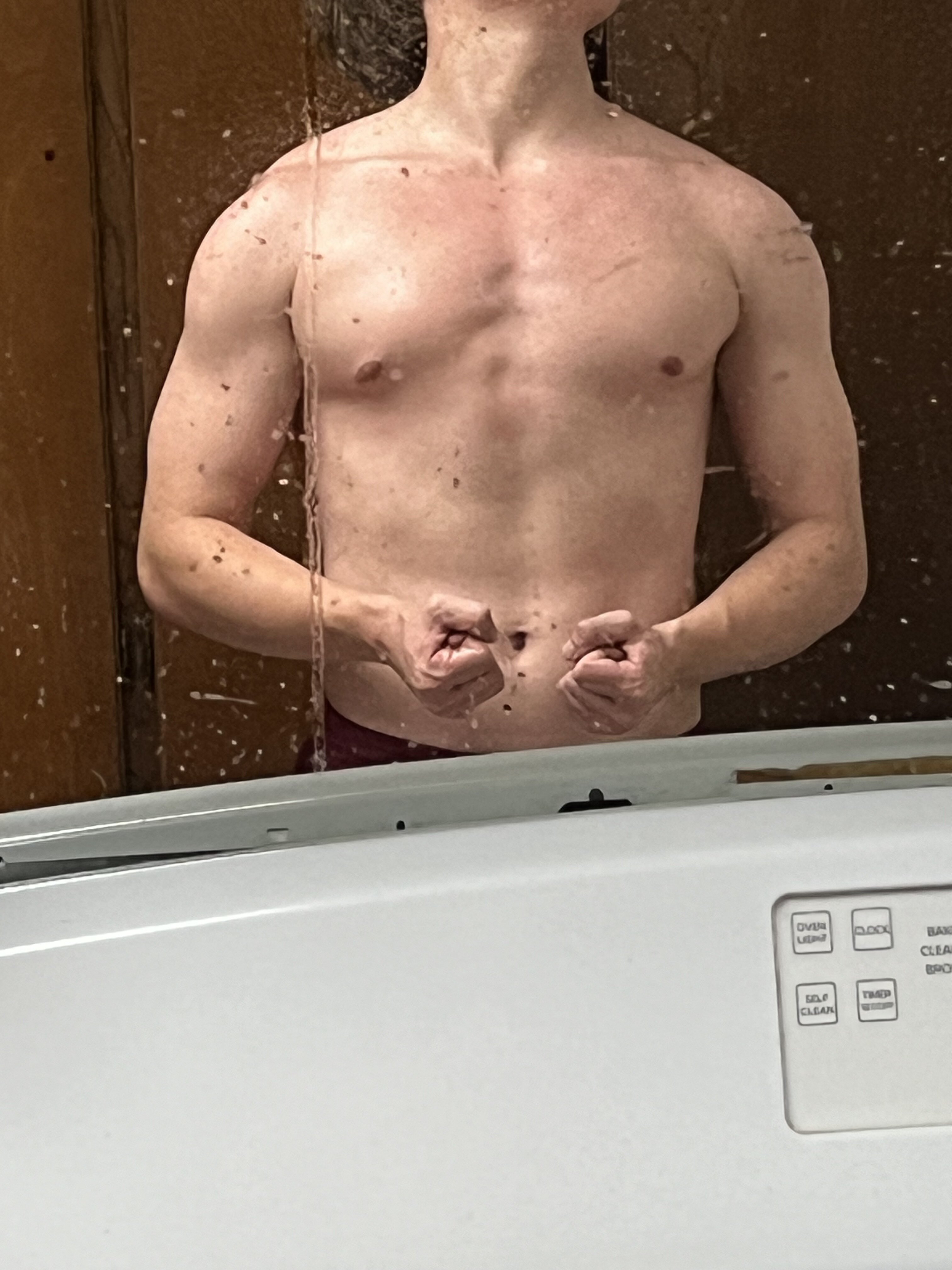 How about providing some clean and clearly visible photos for people to actually comprehend and comment on?anything that i can improve on lmk im natural not on anything currently
