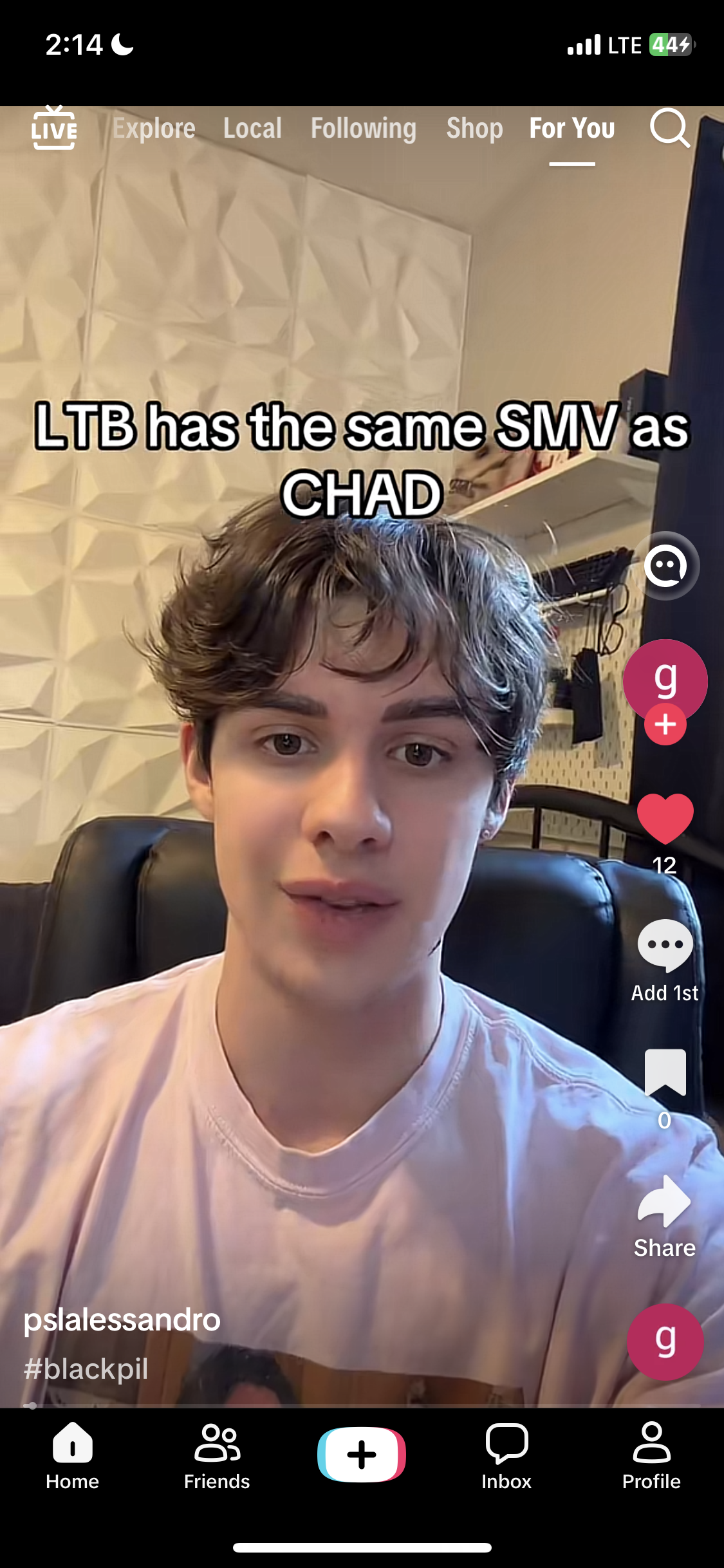 Bodyfat percantage bcs his Face is Not angular enough. He Looks puffy over allThis guy claims Ltn; what save him for being subhuman but what keeps him at LTN?