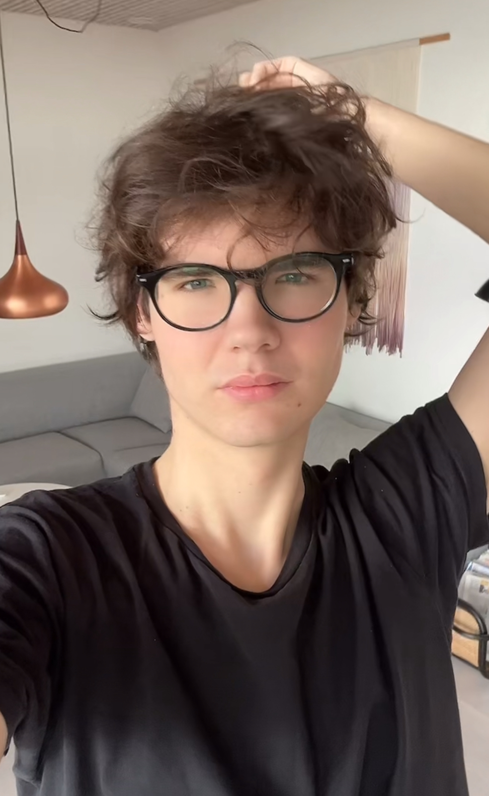 What your doing with your hands? Ltn wear contacts or buy other glasses
