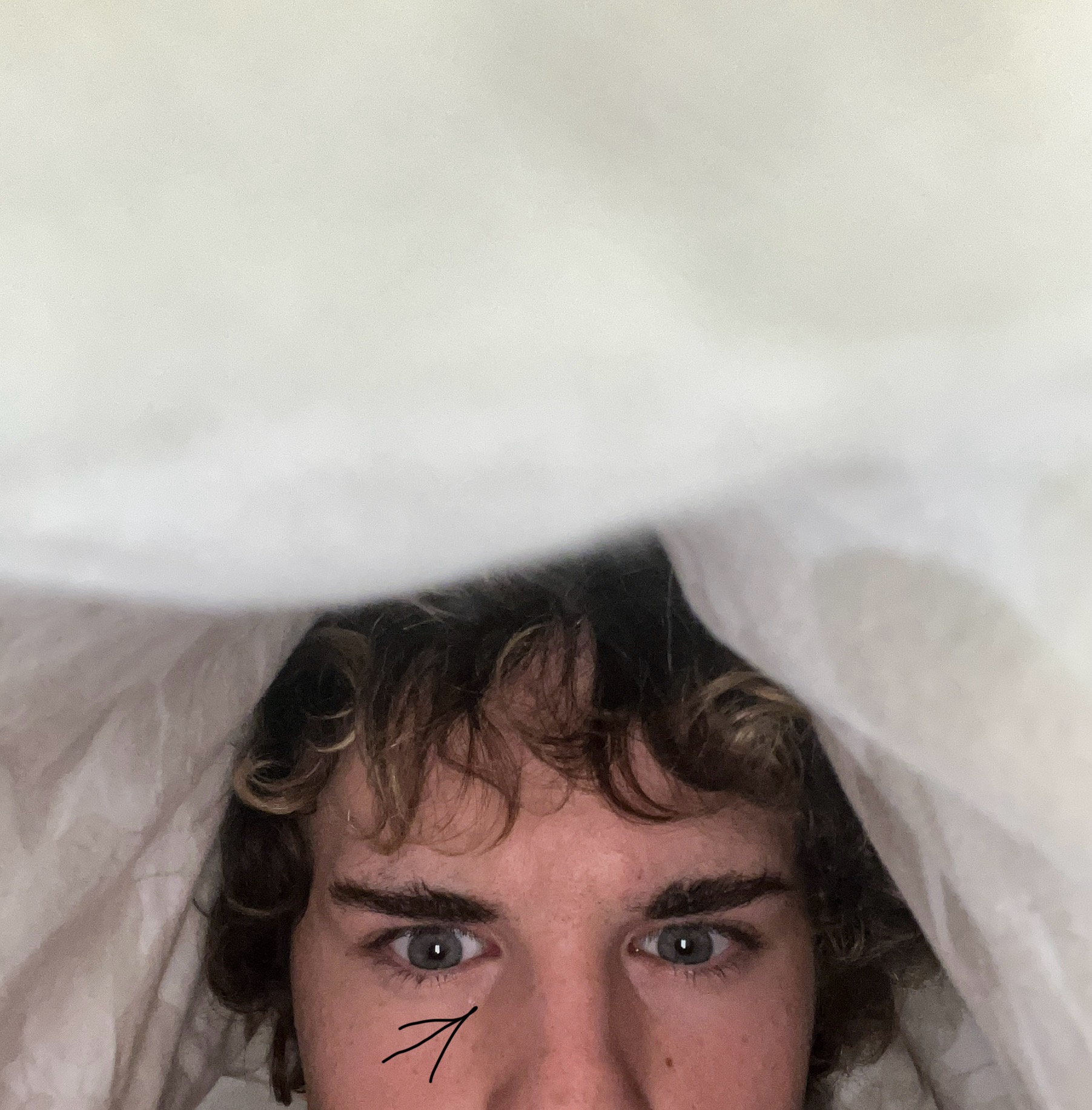 The lines between the nose bridge and eyes