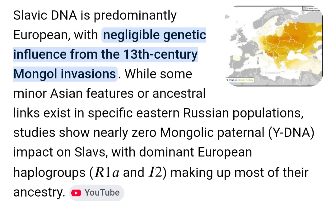 At best you can try and claim tatar influence but even then it was negligible to the point that the average lipka tatar is about 5% asian at best and are a minority in the population, and that also only rly applies to russians