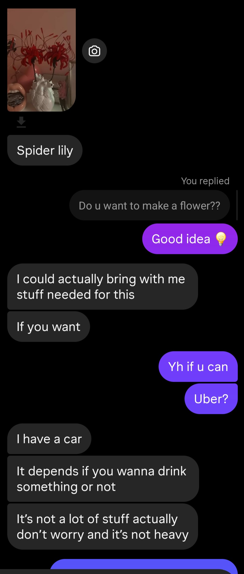 I invited her over to my place and she brought chocolate and flower and we watched anime then have sex.