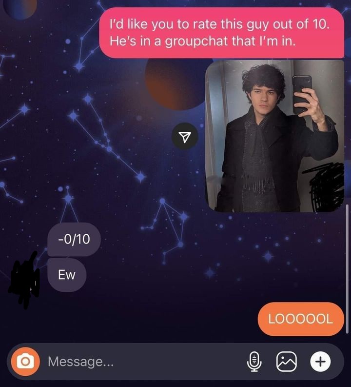 if you had sent me a request to "rate you" on fb or in a social IRL situation, I'd def just say something socially acceptable