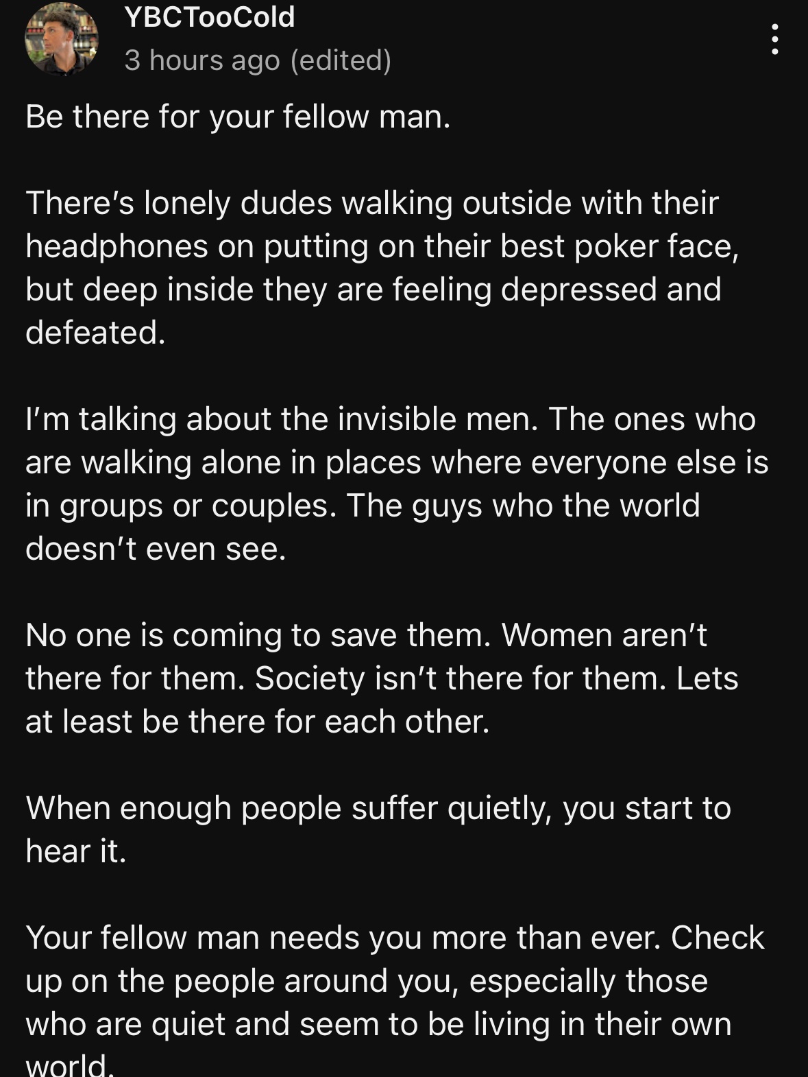 I dont really care whether some random lonely normie will rope out of depression.